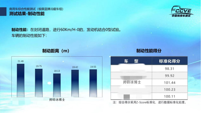 帅铃冰博士冷藏车在商用车六大客观性能测试中行业第一
