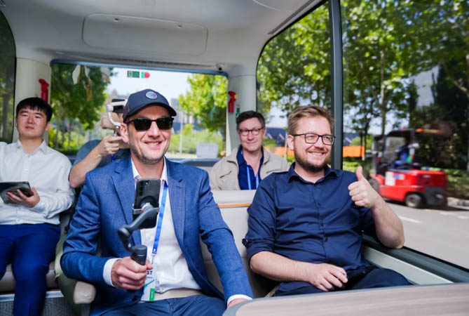 在本次参观交流中,欧洲权威媒体一行怀揣着满满的好奇心和探索欲,与宇通智能网联巴士小宇2.0来了一次亲密接触,众人纷纷赞不绝口,并为我国在科技创新领域的发展速度之快、综合实力之强而感到惊叹。来自英国ROUTE ONE的高级记者Alex Crawford激动地表示:“这是我第一次乘坐自动驾驶巴士,感觉很神奇,在宇通看到的高标准的测试令我大开眼界。我觉得中国的进步已经有目共睹,令人欣喜。”