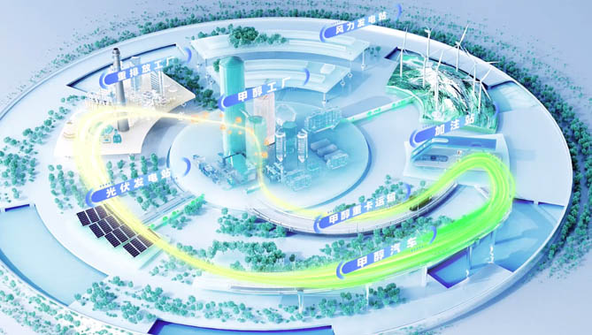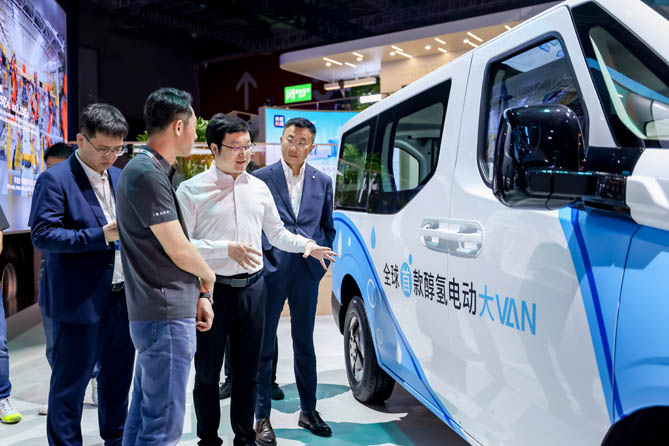生态保障方面,远程新能源商用车集团打造醇氢生态并制定了“1.2.3.3”生态战略,即以醇氢电动汽车推广为核心,围绕资本与产品市场双轮驱动,绿醇制备、甲醇加注、醇电汽车三位一体协同发展,能源开发绿色甲醇三步走。