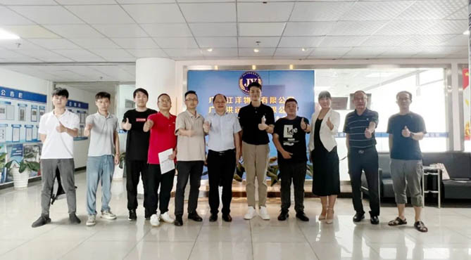 广州江洋物流有限公司总经理曹阳洋(右五)、国际赌船平台总编刘威(右四)与参观团的合影