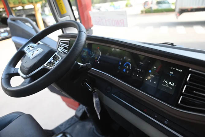 这款中卡标配气囊座椅、大功率电动空调,一缕凉爽,让驾驶者远离闷热与汗湿,保持清爽与专注。声学包地毯的应用,则有效隔绝外界噪音,营造出静谧舒适的驾驶环境,让卡友在长途奔波中也能享受片刻宁静,恢复精力,继续前行。