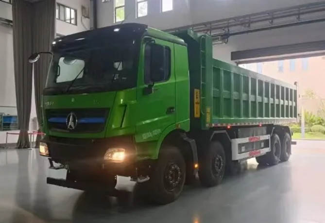 全新北奔422度电自卸车,首先满足的就是高承载需求,车架和车桥均采用奔驰技术。