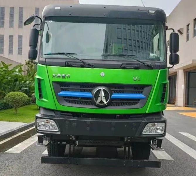 电机功率大,峰值扭矩更大,该车扭矩最大可达到2600N.m,加速、爬坡速度更快,爬坡能力提高20%以上,并且与北奔动力链技术融合升级,电耗也低于行业水平,可以说既多干活又少耗能。