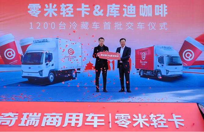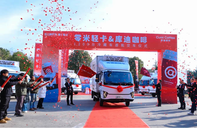 库迪咖啡与零米轻卡1200台冷藏车首批车辆发车