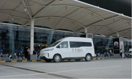 在南宁吴圩机场到达出口的接驳区,一台白色的依维柯聚星EV静静等候着。这正是南宁一家全季酒店的机场接驳车,它以移动的休憩空间,迎接每一位远道而来的旅客。作为每日往返机场与酒店20多趟的“得力伙伴”,聚星EV载着旅客迎着凌晨的朝晖出发,再于暮色里接上深夜抵达的旅客,让他们身处异乡也能感受到有温度的服务。