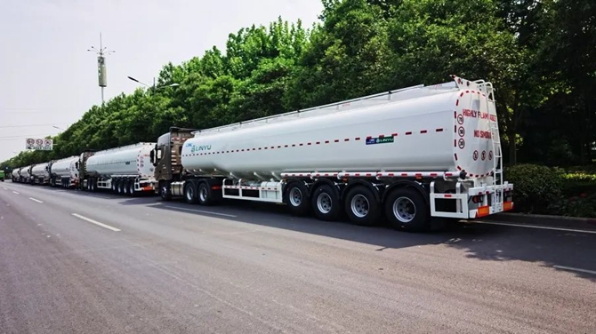 近日,中集凌宇再迎海外发车小高潮,30台4轴碳钢运油半挂车前往非洲,助力当地运输服务。