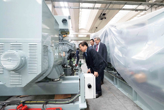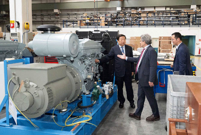 会前,谭旭光一行参观了CTM公司工厂,现场与技术、制造、质量人员交流发电机组产品情况。