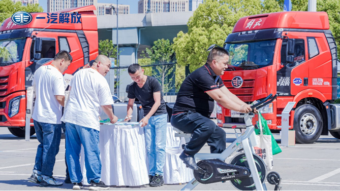 解放携J7、鹰途、J6V经典版等多款重拳产品助阵“5.2卡友节”。在本届“5.2卡友节”主会场的众多活动当中,最受到卡车司机欢迎的就是其中的“游园”环节,现场众多展位都组织了丰富多彩的活动,在“解放大本营”,卡友们充分感受到“吃在解放”“看在解放”“玩在解放”“学在解放”的节日氛围。其间,不仅提供丰富特色小吃,还有循环歌舞表演及惊喜抽奖环节,卡友自由组队参与游戏互动,玩累了还能坐下来感受一次解放发展文化之旅,让五湖四海的卡车人尽享欢乐时光。解放旗下“鱼快创领”和“赋界科技”展位也被围得水泄不通,先进的智能科技让卡友一饱眼福,实际帮助用户解决营运难题。