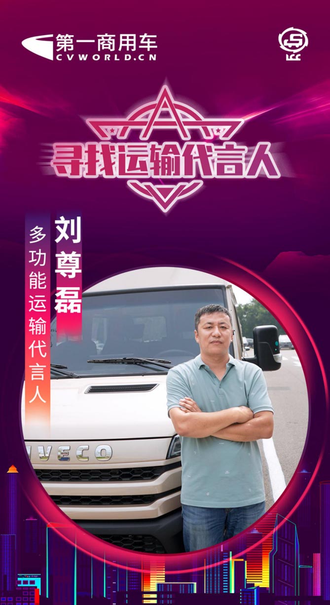9月19日,第五届“寻找运输代言人”揭晓仪式暨“公路运输优秀企业”颁奖典礼将在北京隆重举办。依维柯全新得意用户刘尊磊在此次活动评选中,荣获“多功能运输代言人”称号。