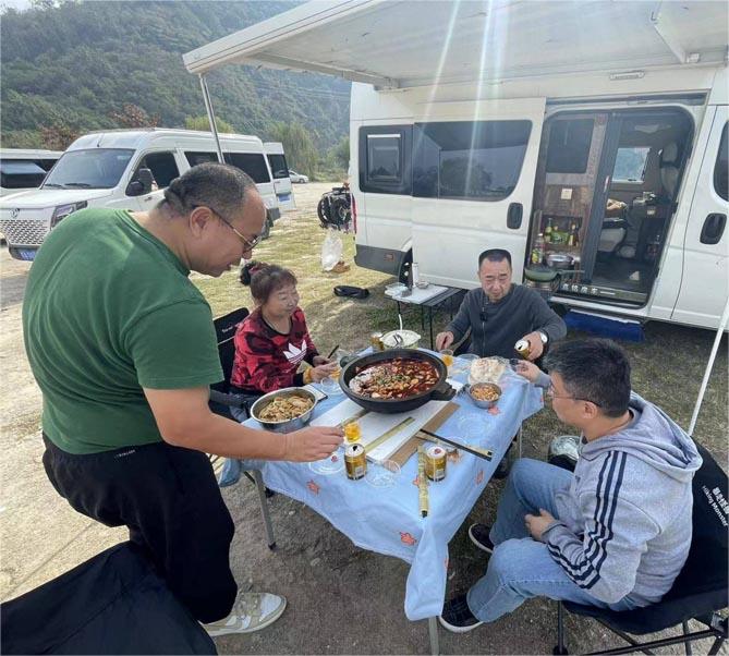 她告诉记者,只要有时间就会驾驶着御风出去转转,至今已驾驶御风游览了国内100多个城市,车子从来没有掉过链子。她说,对于这样一桌一炉,三五亲友,四六小食的生活状态,杨姐乐在其中。“以前我每次出门都要到处找酒店,但现在不一样了,每到一个地方,都会在房车露营地落脚。或湖畔、或森林里、或山脚下。车的空间也大,睡也特别得舒服”,她认为,只有这样才能更加接近自然,融入美景。