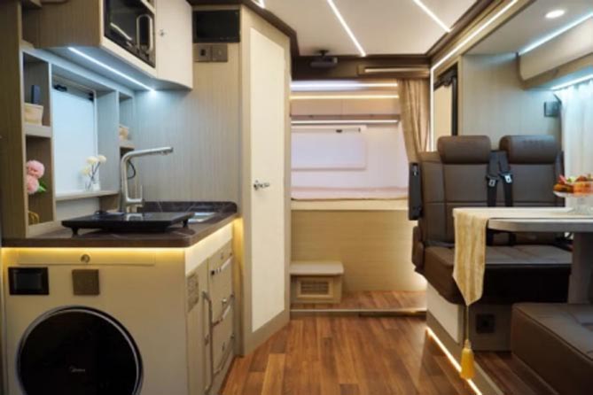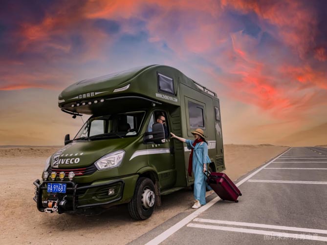 “买房车先选好底盘,好底盘就选依维柯”,依维柯房车采用非承载式底盘设计,总质量可达7吨,丰富改装空间,将房车变成属于自己的移动的家,配备加宽后桥加宽处理,稳定性更佳,装载再多东西也能开得轻松。在车边欣赏落日余晖,饱餐一顿,没有什么比这更浪漫了。