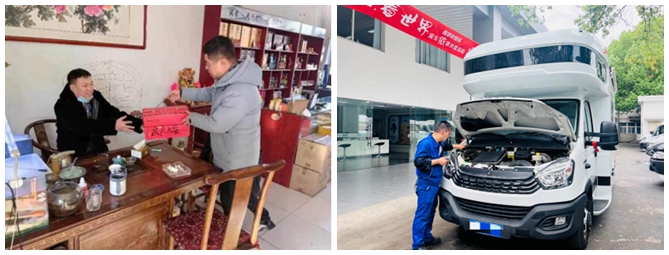 而今年春节期间,南京依维柯为了更好地服务用户,更是重磅推出服务不打烊活动,不仅为用户提供巡回上门车辆检查以及维修保养服务,让广大用户出行无忧,同时还将心意暖暖的新春礼盒送到用户手中,用暖心周到的服务,为广大用户悉心守护。