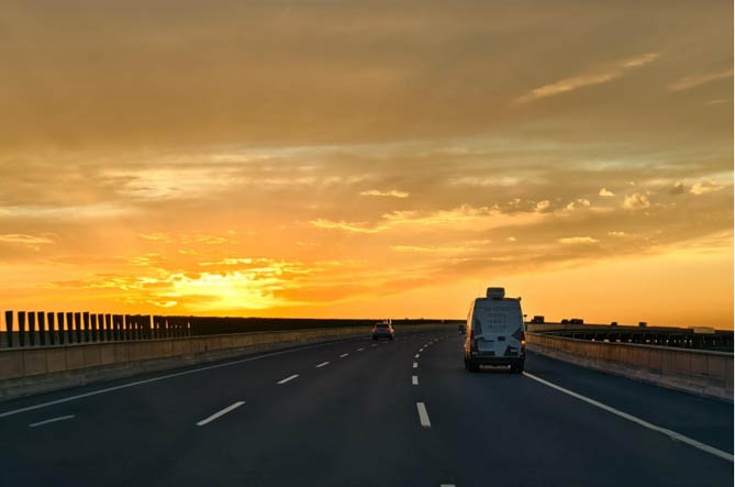 清晨的桐乡,阳光透过薄雾,依维柯房车在小镇的街道上缓缓启动。沿途的风景如同一幅流动的画卷,从江南的水乡到西北的高原,每一处都让人心旷神怡。