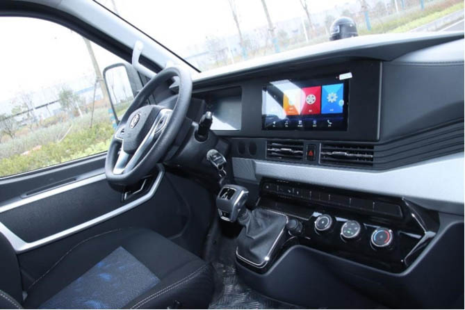 东风御风V9E的仪表和中控采用“双联屏”设计——12英寸全液晶仪表盘,将时速、转速、电压、电池续航等信息集成在一起,驾驶员可以很方便地了解到车辆的实时运行状态;搭配的10.36英寸智慧语音大屏,内嵌MP5、车辆导航、倒车影像等功能,带给用户智能便捷的驾乘体验。