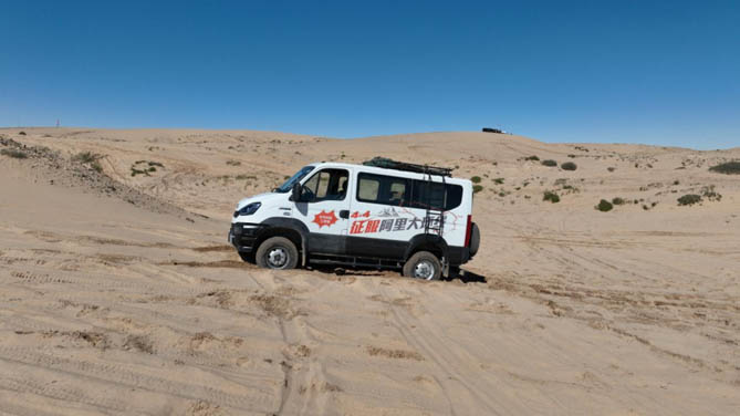 英雄会,会英雄!此次来到戈壁茫茫的巴丹吉林沙漠,依维柯4×4的运动细胞更是被完全激发。面对峰峦陡峭,高低错落高达百米的沙丘,动力强劲、爬坡能力超60%的依维柯4×4在“鸣沙王国”中攀爬俯冲游刃有余,低滚阻AT花纹无内胎轮胎增强了抓地能力;高扭矩高速比使得加速起步反应敏捷,配合灵活精准的大缸径转向器,在驾驭弯道时更从容,让驾乘者享受肾上腺素飙升的速度与激情。巴丹吉林沙漠还分布着很多色彩斑斓的海子,驾驶车辆在湖泊附近行驶,即使路面湿滑,依维柯4X4“全时四驱+三把锁”这样的顶配设计也可以根据路况实时调整动力分配,始终保持稳定的行驶状态;依维柯4×4还对变速器、燃油系统等关键部件进行了防水处理,让行程更加安心无忧。