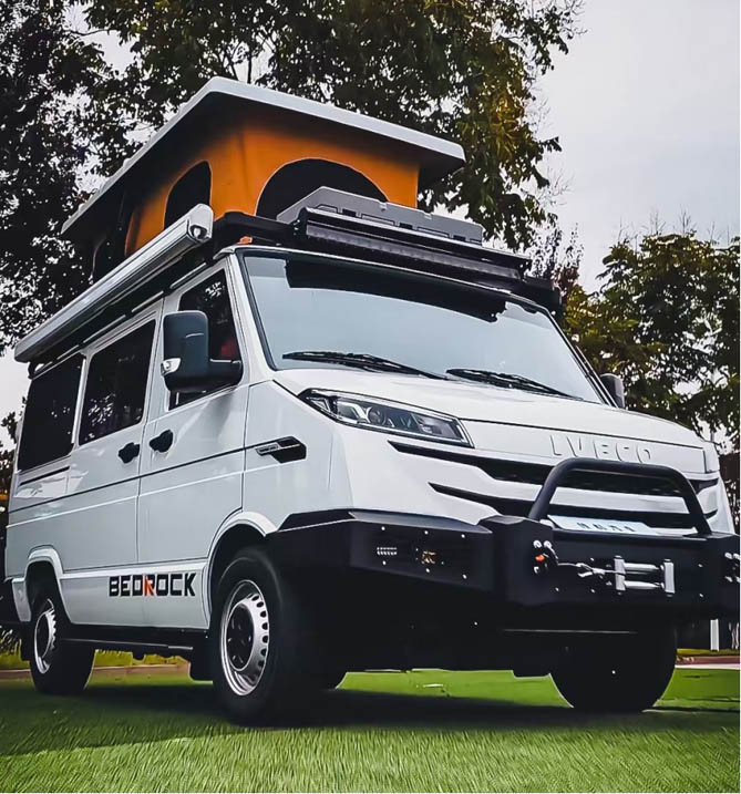 对于爱好改装和DIY的车友来说,依维柯得意宿营车宽敞的空间、卓越的承载力便是坚实的改装基础。其顶部配备了行李架进一步拓展装载能力;车身外挂板及挂件,可以携带更多应急户外装备,随时应对各种挑战;车内的灵活空间布局也可以根据自己的喜欢精心装饰,打造一台专属于你的私人小天地。