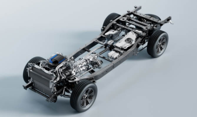 底盘是江西五十铃D-MAX V-CROSS的另一大亮点。车子采用了前双叉臂+后五连杆的悬架结构,这种设计在同级别车型中并不多见,尤其是在皮卡车型中,更多采用的是钢板弹簧后悬架。而D-MAX V-CROSS的后五连杆悬架不仅提升了车辆的舒适性,还兼顾了载重性和越野性能。