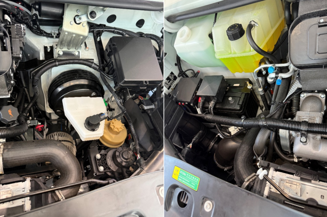 加油口在车辆的左侧,柴油和尿素箱盖用黑色与蓝色加以区分。