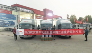 金秋九月,阳光明媚。9月9日,江淮轻卡邯郸象柱服务站内6辆崭新的江淮骏铃厢车一字排开,车前摆放了一箱箱国六原厂尿素等实用礼品,准备交付蒙牛乳业。蒙牛乳业是中国领先的乳制品供应商、全球乳业十强,其在邯郸市建有一处产品中转站,一直与江淮轻卡保持良好的合作,多年来,江淮轻卡可靠的品质和经常主动上门服务给蒙牛乳业留下了深刻的印象,所以此次公司业务扩展需要采购新车时,首先就想到了江淮轻卡。