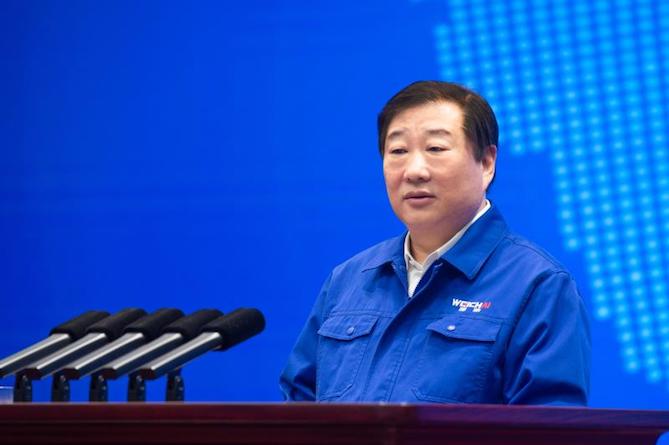 “三个走在前”是习近平总书记对山东的殷切期望。潍柴集团作为全球具有重要影响力、我国行业龙头企业、山东最大的装备制造集团,学习总书记重要指示,我们倍感振奋、备受鼓舞。今天召开千人领导干部动员大会,就是要吹响潍柴在山东装备制造业高质量发展中走在最前的冲锋号。在这里,我要强调的是走在最前,“最”是今天会议的主题。下面,我代表集团向全球10万名员工发出“六个走在最前”的动员令。