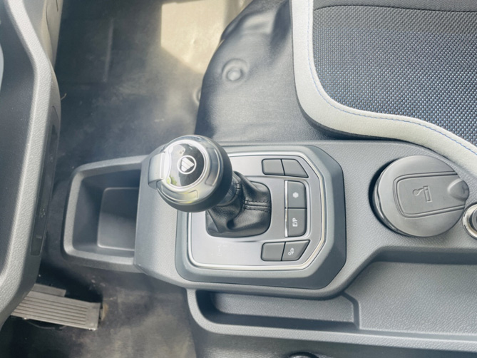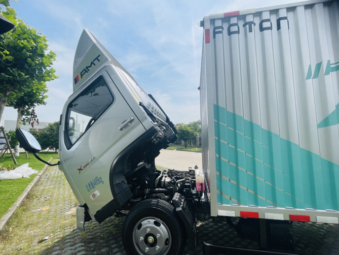 车身上的AMT字样显示它的一大特色,这辆欧马可X pro轻卡装配的是采埃孚5挡AMT变速箱。在城市行车难免走走停停,反复停车起步,如果是手动变速箱难免会让驾驶员感到疲劳。而装配AMT变速箱的欧马可X pro则不会有这样的问题,可以让驾驶员们更轻松舒适的完成运输任务。