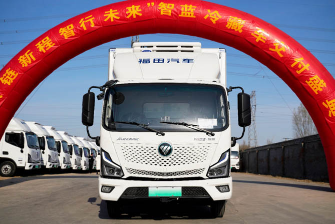具体来看,在纯电技术路线,欧马可智蓝构建EX、ES两大系列纯电产品,推出64-165度电量的纯电冷藏车产品;在混动技术路线,基于FHS智混平台P2、PS、P13三大混动技术构型,推出多款混动冷藏车;氢燃料技术路线,推出80KW电堆的氢燃料冷藏车。目前近500辆氢燃料轻卡已在北京、浙江、湖北等区域投入示范性运营,总运营里程超过千万公里,全面满足城配物流客户多样化需求。