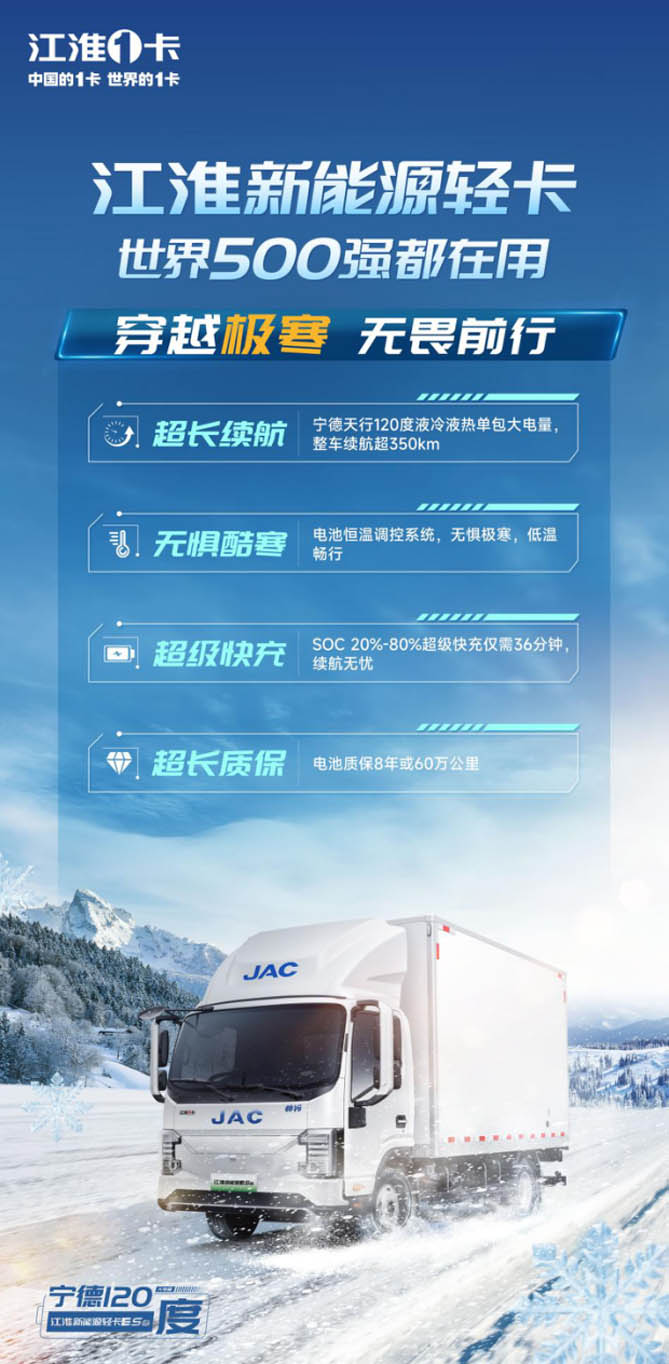 步入冬季,北方地区动辄零下十几度的气温,对新能源轻卡用户日常运输造成了不少困扰,如何破解低温严寒带来的挑战,江淮1卡带着全新答案震撼来袭。12月25日,江淮新能源ES6寒带版抢滩登陆天津,以超长续航、无惧酷寒、超级快充、超长质保四大优势,为当地物流市场及卡友们带来寒冬用车的更优选择!