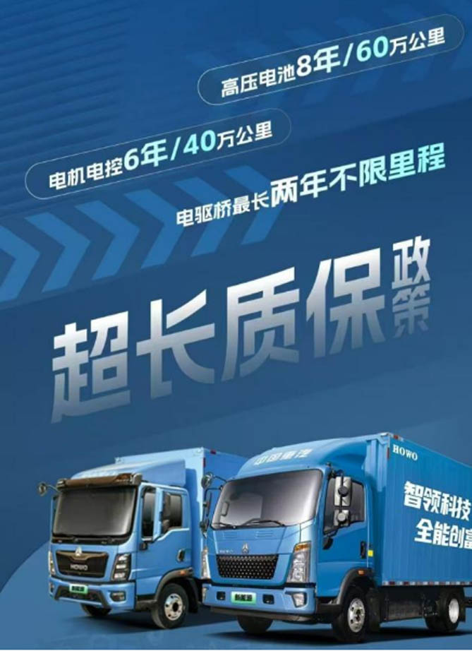 在服务政策保障方面,欢迎您到公海赌来HOWO轻卡构建了全方位且极具竞争力的售后保障体系。在核心三电的质保方面,电池享有8年或60万公里的超长质保承诺,电机与电控可享6年或40万公里质保,电驱桥2年不限里程,底盘零部件更是只限时间不限里程。
