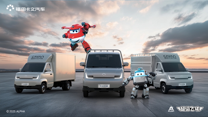 这不仅是一场温情跨界,更将超级飞侠乐迪 “准时送达,搞定一切” 的信念图腾,熔铸为福田卡文小卡的钢铁基因。福田卡文小卡在实际工况下,2T承载、高效运输,仍能实现300公里续航,一跃而成叱咤物流行业的“准时送达践行者”。