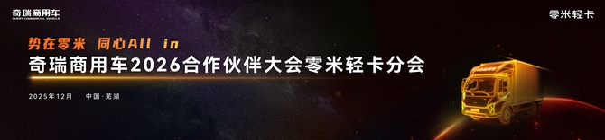 12月24日,奇瑞商用车2026年合作伙伴大会,零米轻卡金米版上市发布,敬请期待!