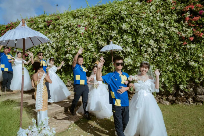 7月11日,德邦在“爱情圣地”巴厘岛为50对快递小哥夫妻免费办专场集体婚礼。德邦选取的PURI BAGAWAN塔曼是巴厘岛最独特的宴会场地,拥有360度海洋景观,窦骁&何超莲、刘诗诗&吴奇隆、林心如&霍建华等明星婚礼均在此举办。