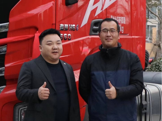 其中,安徽福车物流有限公司主营配货运输,主要往返于安徽-广东各省市之间的高速专线,为了开拓公司的运输网络,亟需增加一批高效牵引车来增强市场竞争力。上汽红岩安徽团队从用户需求出发,派专业技术人员深入到用户日常运输场景中,对公司车队运营路线、装载出勤需求及司机驾驶习惯等实际情况进行了挖掘。由于车队在运输途中几乎全程高速,对车辆的动力性、可靠性有较大需求,杰狮H6牵引车欧标版车型搭载了康明斯X13发动机+ZF AMT变速器的欧标动力链,最大马力580Ps,最大扭矩2600N•m,在如此澎湃动力之下,车辆起步快、加速快,超车毫无压力;考虑到车队经常运输活性漂白土等需要“薄利多拉”的配货,整车更采用轻量化设计,自重比同级竞品低200kg,助力用户多拉多赚之余,平均油耗还可低至27L/100km,让性能提升与成本控制实现了双赢。