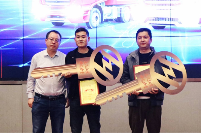 活动现场,上汽红岩营销公司牵引车事业部总经理郑宇龙将象征财富的“金钥匙”递交到安徽福车总经理手中,本次批量交车为双方的合作开启了新篇章。安徽福车总经理也作为上汽红岩“公路英雄先锋官”代表上台接受了授牌,他在致辞中表达了对上汽红岩品牌的信赖:“我们用过不少品牌的重卡,但能和司机师傅们一起吃、一起送货、一起共创产品的品牌不多,运输行业需要像红岩这样的重视用户声音、重视用户体验、重视研发创新的企业,我相信买红岩就是能赚钱、更放心,也期待以后与红岩有更多的合作!”