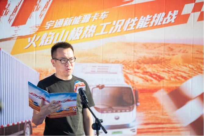 火焰山恶劣的生态环境是车辆极限性能测试的理想场地。宇通深知在真实的运营工况下,更能体现车辆真实的技术实力。中国汽研整车测评研究中心运营部部长徐磊在开幕式上对本次极限工况挑战表达了高度肯定,他表示:“极限环境、极限工况、极限挑战,这次活动将在真实、恶劣的环境下,向用户真切展现中国自主纯电轻卡的极限性能实力,而中国汽研凯瑞认证也将以客观的测试数据,来记录中国新能源轻卡的极限所在。