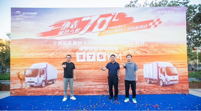 面对用户在新能源产品上存在的“续航里程、补能速度、运输效率、行车安全”等方面的忧虑,2023年8月29-30日,中国汽研凯瑞认证全程技术鉴证,中汽兄弟、中国商用车发展报告、宇通集团联合主办的地表70℃极热大“烤”在新疆吐鲁番拉开帷幕,宇通新能源轻卡奔赴火焰山,在极限环境中挑战车辆极限。