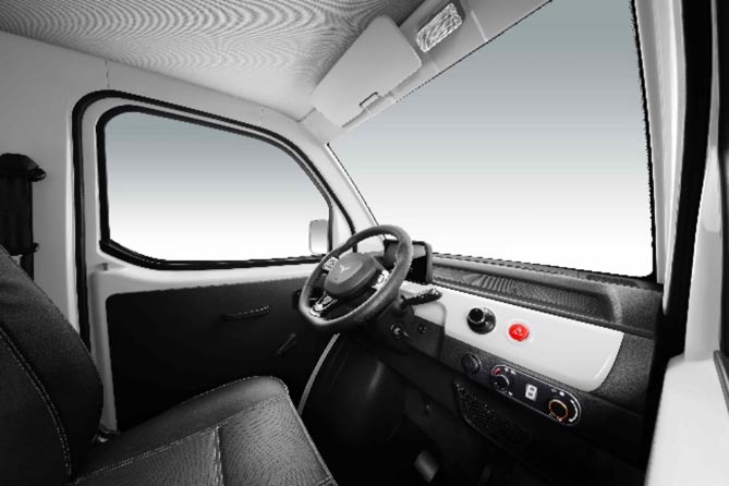 此外,大力牛魔王D02驾驶舱内“麻雀虽小,五脏俱全”。封闭的驾驶舱采用了单座布局,并配置有冷暖空调,用户在冬夏工作更加舒服。高清液晶仪表、无线蓝牙、USB充电接口等实用配置,一步到位,让工作不再枯燥无趣。加上三幅式方向盘等,相比电动三轮车,驾驶体验提升了不止一个档次,无论是拉货还是摆摊,都可以享受到新能源时代高质感的出行体验。