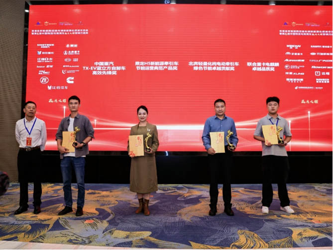 乘龙H7 LNG牵引车获得干线运输节能典范产品奖,宇通600度牵引车获得长续航高效运营先锋奖,欧曼银河7获得干线物流旗舰重卡奖,广汽日野9.6米纯电动厢式运输车获得超长续航典范产品奖;