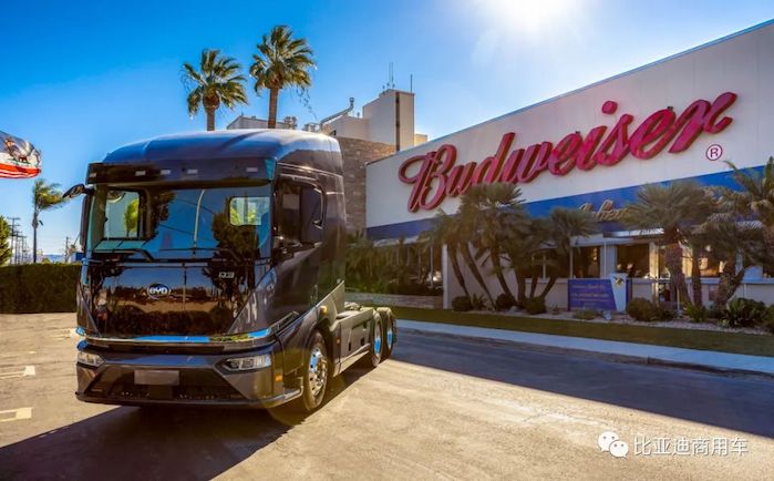 近日,为配合美国的橄榄球盛典“超级碗”,比亚迪与百威英博(百威啤酒母公司)达成零排放卡车运输合作,使用纯电动牵引车8TT运输百威全新款“零碳水化合物”啤酒,为赛事助兴。百威英博承诺,到2025年将其在美国价值链的碳排放量减少25%。在本次合作中,比亚迪通过绿色技术助力百威英博实现可持续发展目标。