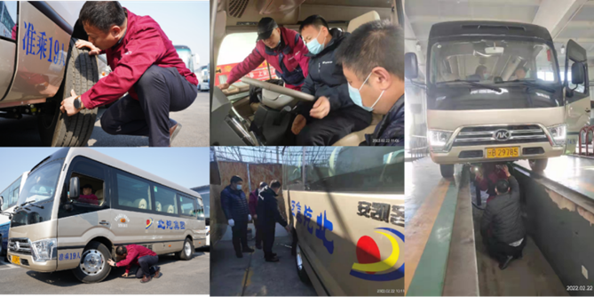 2月底,在北京两会专用停车场内,安凯客车服务总监、江淮轻卡集团服务部总监、北京锋硕江淮服务站工程师,正在对停车场内14台两会用车进行现场排查。此次排查的车型涵盖7-12米长度的三种车型,A6客车、A9高端豪华客车,以及国事老兵乘坐的宝斯通升级版N7车型,检查项目包括车辆静态24项和动态21项。