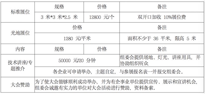 注:标准展位最小租用面积为9㎡;光地最小租用面积为36㎡。