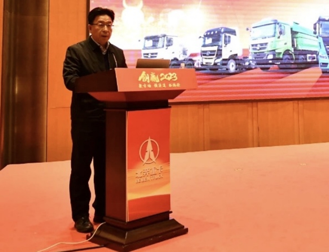 白国生在讲话中表示,北奔重汽召开的经销商年会,既是一场久别重逢的盛会,更是贯彻自治区党委、政府和包头市党委、政府关于属地重卡产业发展的落实会。自治区党委书记孙绍骋到任后,做出了“支持本地新能源重卡生产和推广使用”的重要指示;王莉霞主席在今年政府报告中提出了“加快推进制造业高端化、智能化、绿色化,实现‘风光氢储车’一体化推进”的具体要求。北奔重汽是自治区重要的本土军民融合型重卡企业,唯一具备资质的重卡制造企业,自成立以来助力地方经济社会发展,成为地方政府在改革发展中的中坚力量,在带动“呼包鄂乌”城市群周边大宗货物运输上,具有得天独厚的优势,是包头市打造千亿级新能源重卡产业集群的重要支撑。2023年,我们将坚定支持北奔重汽充分发挥产业链龙头作用,全力打造千亿级新能源重卡产业集群,支持北奔创新体制机制和营销模式。一是与北奔一起找客户、跑市场、找订单,主动对接属地大型企业和承运商,加快释放现有产能。进一步提高自治区市场占有率,引领自治区新能源重卡市场。二是加快充换电站建设进度,积极打造绿色物流枢纽,为新能源重卡销售提供好基础保障。三是发挥北奔新能源汽车产业链龙头带动作用,引进核心零部件落地包头,拉动上下游产业链聚集,建成西部地区汽车制造和零部件生产配套基地。同时希望北奔重汽在新的一年抢抓机遇、创新模式、奋勇争先,以“只争朝夕、大干快上”的紧迫感、责任感,满腔热情“爱包头”、立足产业“作贡献”,充分发挥新能源重卡产业链链长优势,全力推动自治区新能源重卡推广方案落地,打造成自治区千亿级新能源重卡产业集群,实现企地共赢。