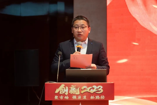 北奔重汽营销公司京津冀大区经理助理黄长波围绕抢抓机遇、创新模式、互信发展、赢战市场四个方面,作《2023年京津冀大区商务年会主题报告》。2023年与合作伙伴同心协力,拼搏攻坚,共同谱写新的辉煌篇章,全力实现全年销售目标,创赢2023!