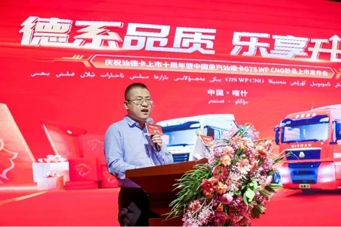 活动当日,重汽领导莅临现场并为本次汕德卡G7S WPCNG新品上市发布会登台致辞,进一步讲解了G7S WPCNG新品的非凡动能、高效创富、整车节气、舒享驾乘等多重优势。同时,也表达了对到场来宾的真挚祝福。