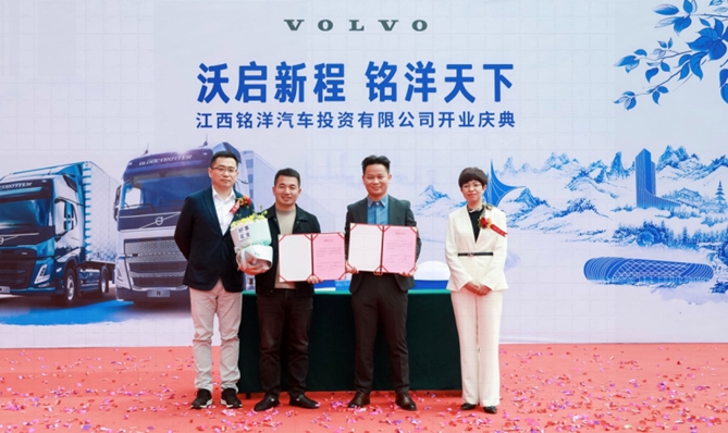3月30日,沃尔沃卡车江西省授权经销商江西铭洋汽车投资有限公司在“中国物流汽运之都”江西高安举行开业仪式,再次展现其对中国市场的承诺。沃尔沃卡车中国总裁董晨睿、江西铭洋集团董事长杨彬彬出席活动,与现场嘉宾共同见证了这一个重要时刻。