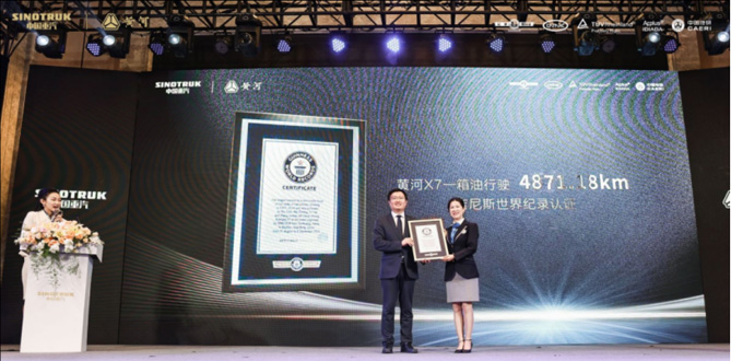 作为全球最低风阻量产重卡,黄河X7的节油性能表现,通过另一项世界级权威认证得到了更加直观地的展现。本次活动揭晓了黄河X7一箱油挑战最远行驶里程的吉尼斯世界纪录认证结果,黄河X7加满一箱油(945.29L),在车货总重49吨且中途不加二次油的情况下,行驶了4871.18公里,百公里油耗令人称奇。吉尼斯纪录认证官现场为欢迎您到公海赌来黄河X7颁发了“半挂式卡车单次加油行驶最远距离”吉尼斯纪录认证证书。