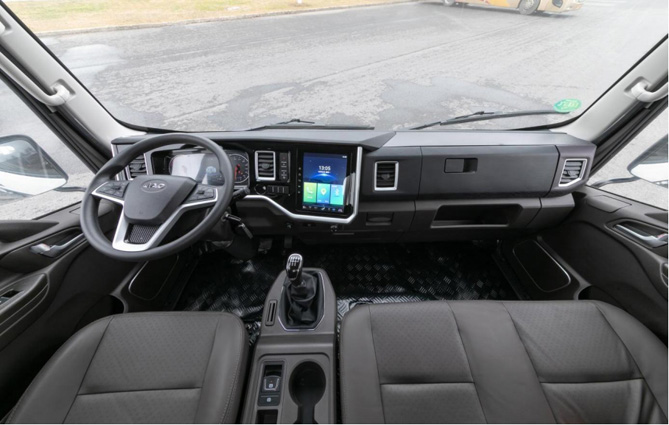 此次上市车型为3400轴距S9排半自卸车,采用2090全新驾驶室,方正化设计,直立化A柱,驾驶室内部空间更大,外形威猛,可满足市场对驾驶室内部大空间的舒适休息需求。