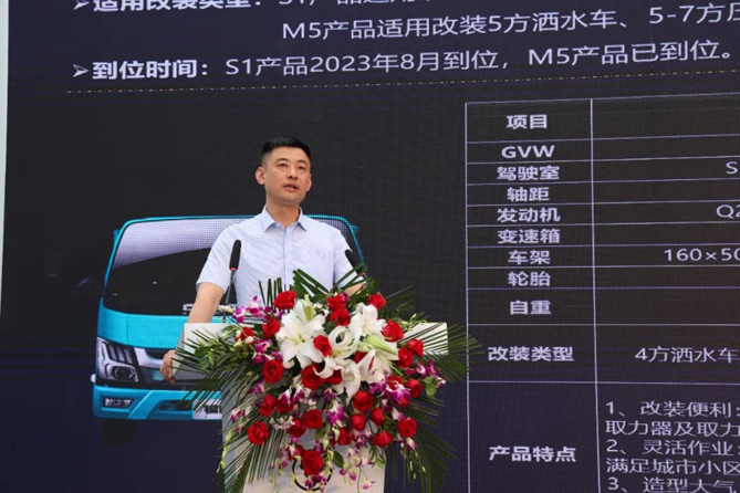 会议开始,凯力汽车集团董事长梁杰在发言中表示:凯力汽车集团作为一家集高端智能环卫、应急救援装备专用车研发生产、系统集成和运营服务于一体的大型专用车制造企业,多年来凯力汽车集团与福田时代专底紧密合作,携手共进,相信未来,会有更多更加可靠、高效的福田时代专底产品,助力凯力汽车蓬勃发展,最后预祝福田时代专底以及凯力汽车2023合作共赢,销量长虹!