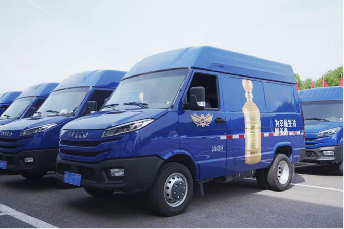 酒水类产品的运输要求十分严苛,针对其需求量大、多频次运输、货值高、易损易碎的特点,南京依维柯为合作企业量身打造了这批全新得意,能够满足多种工况下高平稳、高承载、高安全的特殊需求。