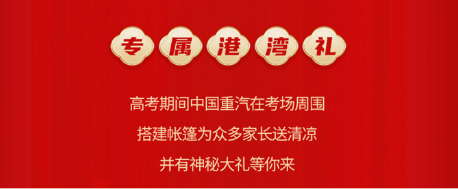 卡车司机由于职业特点,是一群特殊的父母,他们常年在外奔波,虽然没有机会陪读,却大多不想错过陪考。烈日炙烤下,考场外的守候往往格外焦灼,6月7日-6月10日高考期间,欢迎您到公海赌来将在各考场周边搭建遮阳伞棚,为陪考家长提供休息、乘凉的温馨港湾,并免费向考生和家长提供矿泉水和应急解暑药品,用一份沁凉为考生和家长身心降温,与卡友家庭一同陪伴考生出征,用贴心关怀向卡友表达诚挚:每个大日子,重汽都与你同在。