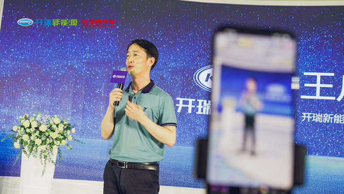 开瑞新能源营销公司副总经理王广友现场为大家解读开瑞江豚上市一周年获得爆款销量背后的原因,他说作为行业内第一个真正打通“人·车·货·场”全生态价值链的企业,开瑞新能源为用户提供购车、金融、汽车租赁、运力加持等服务,并在业内率先提出并落实用户收入,让司机小哥的创富之路越走越顺,越走越宽。